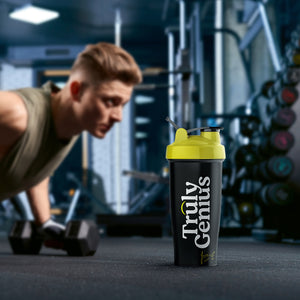 Manténgase alimentado e hidratado mientras viaja con nuestra Shaker Bottle Truly Genius. Perfecta para mezclar batidos de proteínas, batidos y suplementos, esta botella está diseñada para optimizar su rutina de ejercicios. Con una tapa a prueba de fugas y un cómodo asa de transporte, es su compañero confiable para entrenamientos, caminatas y días ajetreados. ¡Mejora tu juego de hidratación hoy!